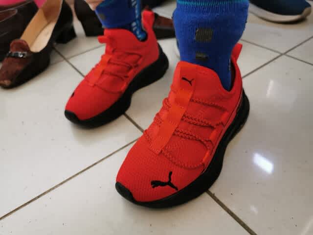 奥さんはパーカーを2つとか。最終日の締切1時間前とかに着いたので、アパレル4つで1万!みたいなタイムセールしてて。で、みらんくんにお靴👟をね。真っ赤なスニーカー、気に入ったみたいで。