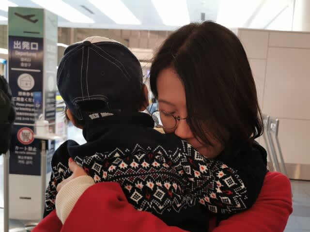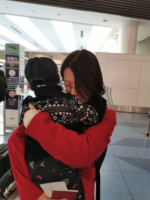 そして想定以上に寒い🥶。そんな中、歩いて駅に行こうとしているので、起こされちゃったし羽田空港✈️までおくることに。もちろんみらんくん🧸も一緒。