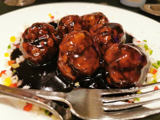 ここの名物の酢豚。黒酢が甘くてめっちゃ美味しかった😋。