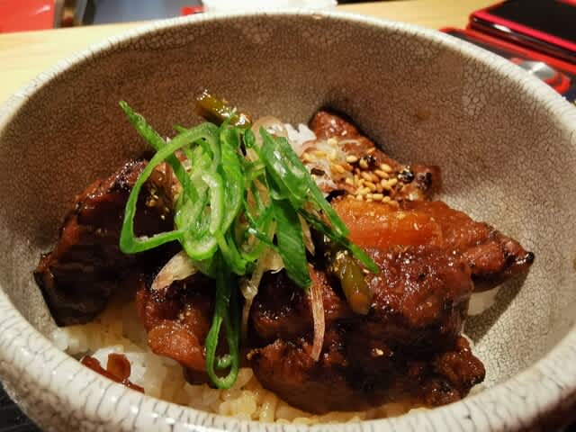 相変わらずの絶品蕎麦。藻塩と山葵で美味しく。からの焼肉丼。