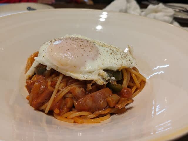 で、全然たりなくて、ナポリタン🍝をね。モチモチの麺で美味しかった。初めて食べとけど、これはハマるかも。