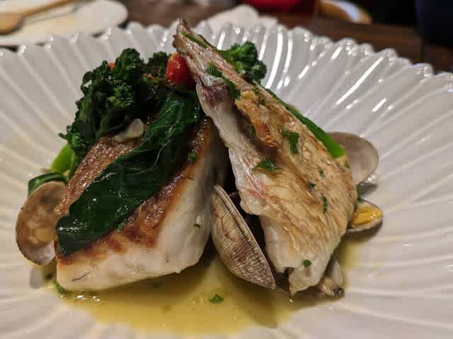 そして、鯛のアクアパッツァ。物凄く良い香りと味で。アサリもかなり良き👌。