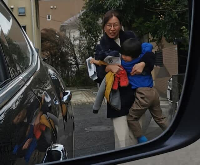 お出掛け前に、車🚗の中で、2人が来るのを待つ。