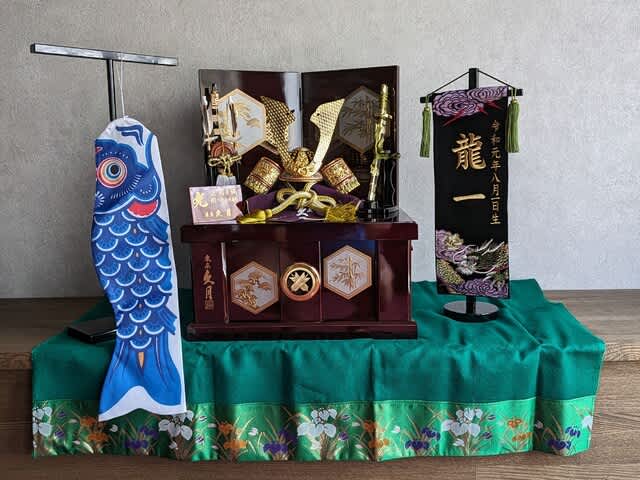 『須走のリビングに兜を飾りまして···』