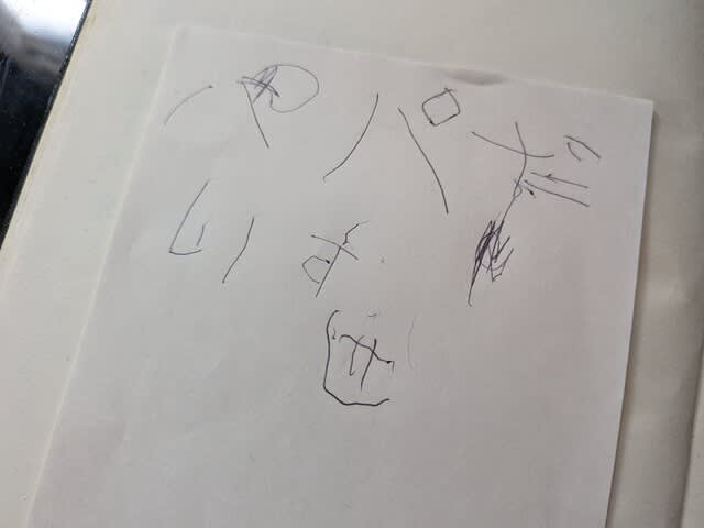 嬉しいしかないね。うん、ホント嬉しい。書いてくれたことも嬉しいし、こういう成長が可視化されてきたことが嬉しい。それまでは映像で撮って、あとから成長を見られるようにと思っていたんだけれど、自らこのように形に残してくれるようになったってことだなぁ、と夜中、感慨に耽った。