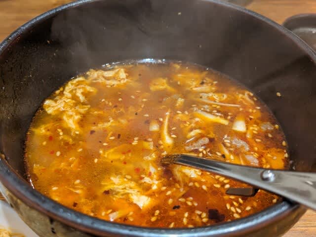 締めはユッケジャンクッパを。