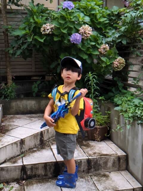 『紫陽花が咲く中で元気に保育園へ行ってきてくださいな・・・』