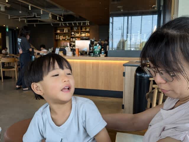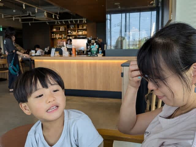 漏らされても困るので、急遽東京インター🛣近くのスタバ☕️✨でドリンク🥤買うことに。もちろん、みらんくん🧸はスッキリしてから。