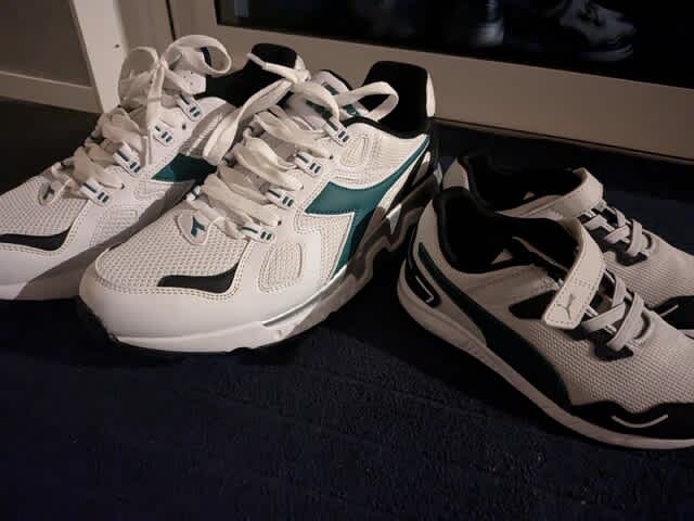 パパはDIADORA、みらんくん🧸はPUMAでして。色合い似てるね。今度イタリア🇮🇹行ったらみらんくん🧸の靴買おうかね。