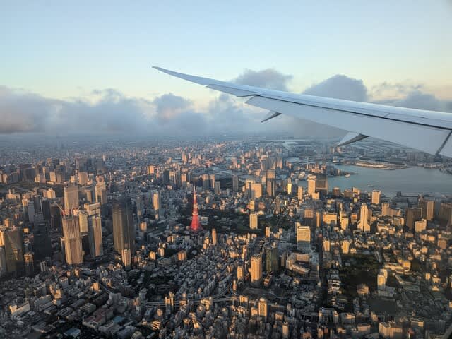 きっと海からの風が吹いていたためと考えられますが、羽田空港への着陸ルートは東京上空を通るものでした。