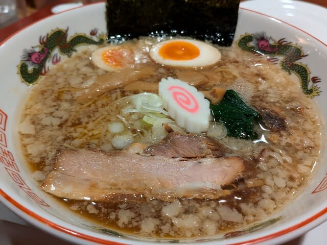 それ以外にポテト🍟も食べたが、背脂中華👲を。美味しくてね。鶏肉ベースで醤油ラーメン。