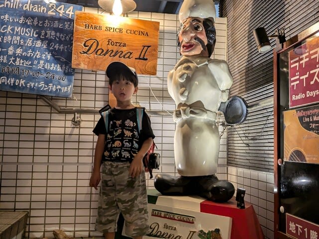 保育園からの戻りでちょうど奥さん👩が出掛けるところで、自宅から環七のバス停🚏まで一緒に歩く🚶♀️。我々は奥さんを見送った🚍あとに、若林の交差点まで歩き、バスに乗ることに。当初は渋谷駅いきのバスに乗ろうとして。若林の交差点からバスに乗ることに。そしたら、みらんくん🧸があそこにラーメン🍥🍜って書いてある、と。よく見ると、火曜日のみラーメンを出すイタリアン🇮🇹となっていて。え、今日火曜日じゃん、と。