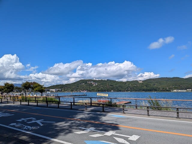 帰りが中央道🛣なので、そっち方面に。今日は山中湖近隣はお天気☀︎良くて。でも、この時期は富士山🗻は見えないものなので雲ばかり。風🍃が吹けば気持ち良いけど意外と気温🌡は高いかな。