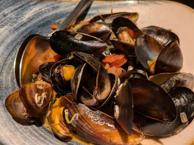 から、Cozze。ムール貝です。トマトソースの煮込みでしたが、サルシッチャが入っていました。こういう食べ方もあるんだなって勉強になりましたね。美味しかったです。