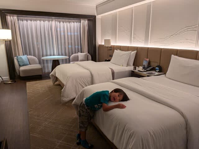 キングサイズの部屋にしてもらえば良かったかな。みらんくん🧸を抱っこして寝られないじゃん。。。