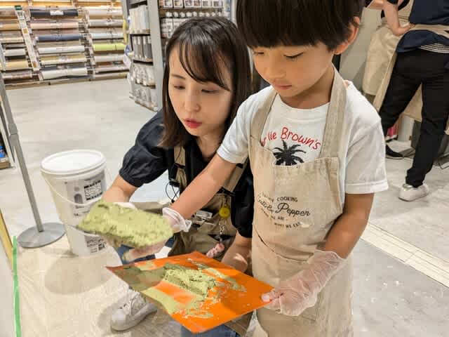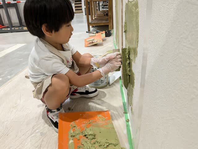 ガーデンプレイスって、数年ぶり?に来たかも。。。こんなDIYのお店があるなんて知りませんでした。色々と興味本位で見ていたら、壁紙の上から塗れる漆喰と言うのがあり。しかもその場で体験出来ると。