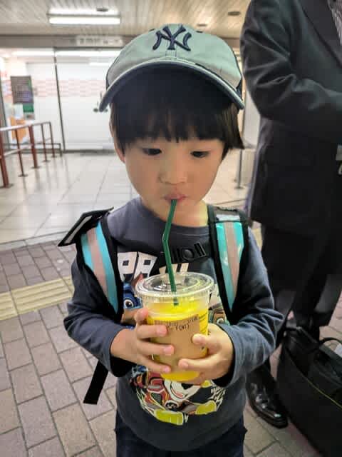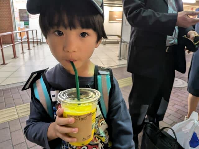 イレギュラーと言うか、カロリー摂取の為に仕方なくマンゴーフラペチーノ🥭🥤を買い与えた。夕飯の量、正直少なく思ったから、せめて少しながら糖質とビタミン?と思って買ったのよね。で、三軒茶屋のスタバを出て、バスに🚍乗る前に飲みきるかと思ったら、飲みきらず、で…。持ち帰り用の紙袋を貰わなかったので、おいらかカップを持ってバスに。その時、ちょっと?飲んでしまったのよね。