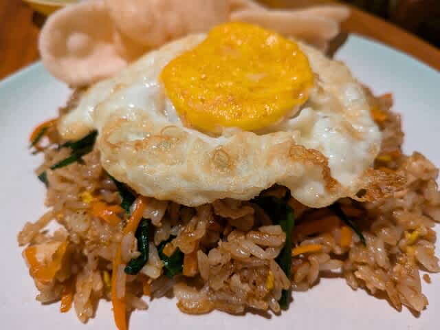 少しずつ舐めてみたがやっぱり元味で美味しかった😋かな。実際、みらんくん🧸はパクパク食べてました(๑´ㅂ`๑)。そして本来はキッズメニューのchicken fried rice。なんのことは無い、ナシゴレンでしたw。炒飯?って思ったけど、ここはバリ島🌴🌺✈🍍。