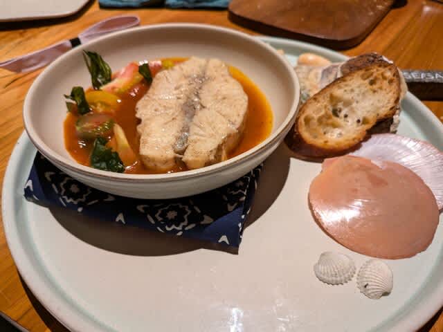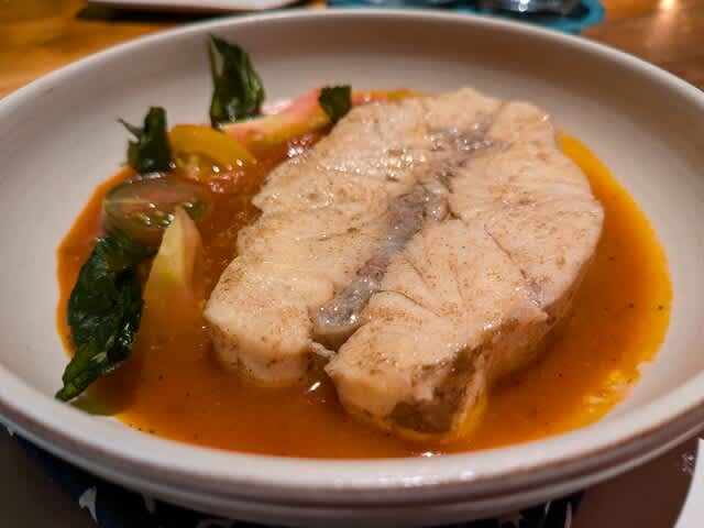 頼んだのはスズキ。トマトソース🍅煮込みらしい。