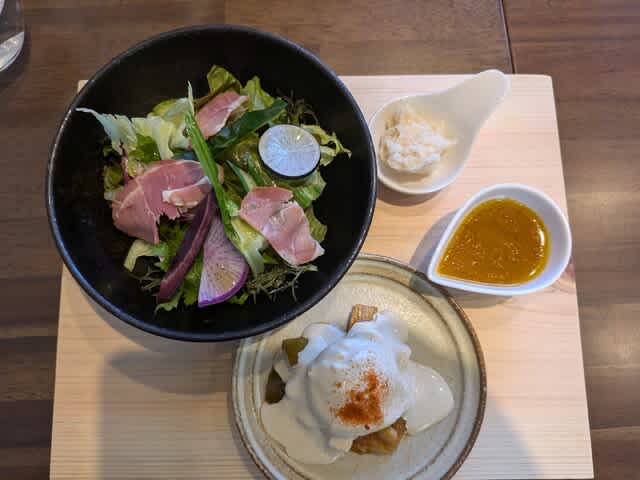 そしてハンバーグをオーダー。その前に前菜。サラダ🥗。