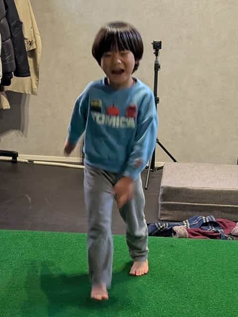 裸足でサッカーボール⚽️を蹴っていますが、痛くないのかしら?裸足だとトーキックをしないから、この方がボールの正しい蹴り方を覚えるかもなぁ。ホントは、庭をとっとと人工芝化して、そこで裸足で蹴りたいんだよね。ま、でもゴルフルームはそれなりに広いし、ここでたった10分でもボールを一緒に蹴ると言うのは本当に良い時間だなと。