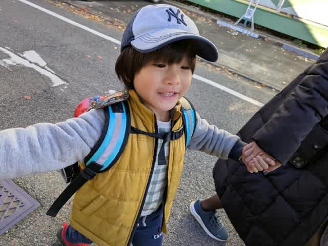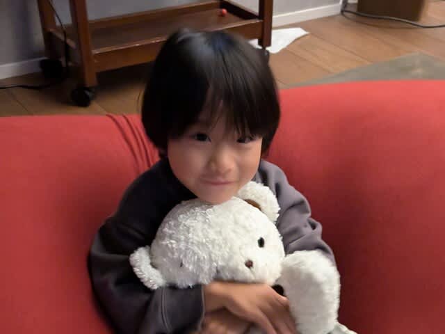 朝からみらんくん🧸を保育園🎒へ。