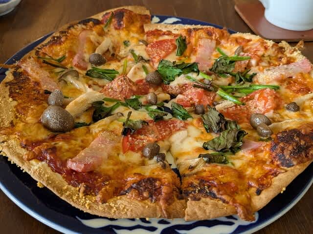 みらんくん🧸はピザ🍕と。半分はおいらが食べましたが😋。