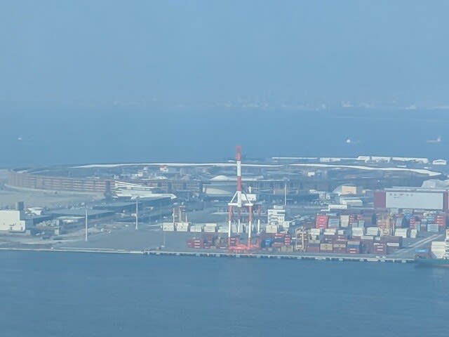 コスモスクエア駅と言う、初めて来る場所に。そこの駅の1つ先が万博の開催地だな、と。中央線に乗っている時は思わなかったけど、見えるんちゃう?と。ふと見たら見えました。