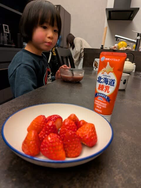 酸っぱいもの嫌いなんで。いや、果物や野菜で酸っぱいものが嫌。なので、練乳を掛けるし、野菜の場合にはドレッシングを掛けます。生のままで野菜は絶対食べないんで。同じようにいちごにも練乳。で、今回、御殿場のスーパーで買った練乳、ちょっと粉っぽくて全然美味しくなくてさぁ、、、やっぱいつものが良いな、と。