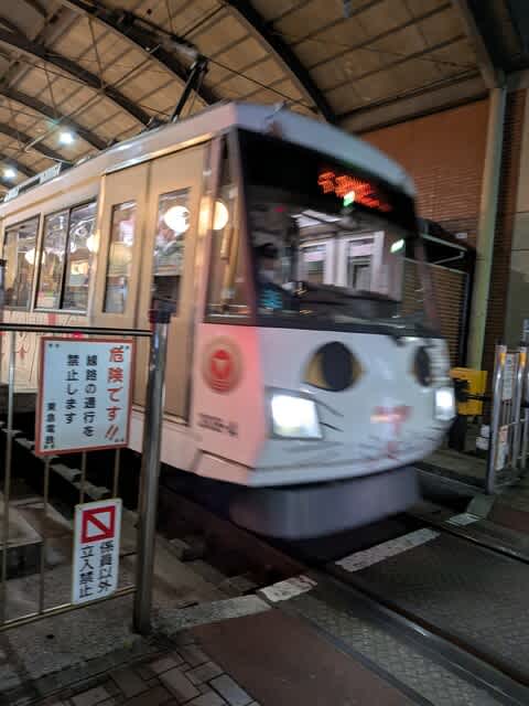 ワンオペ最高👍。みらんくんとずっと話していられる🤗👍。保育園🎒のお迎えのあとは、そのまま家を素通りして松陰神社前⛩️🚉へてくてく。そこから世田谷線に。そしたらなんと猫電🐱🚃。