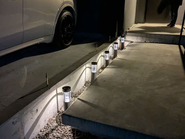 日中の陽射し🌞が強いと、夜🌃きちんと灯りが灯る。今日はちゃんと発電したみたいで。5個とも灯りが付いてました。