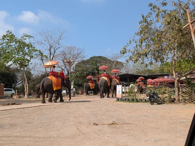 朝8時半にホテルに車が来ていまして、そこから一路アユタヤ🐘へ。象さん🐘に乗るために。