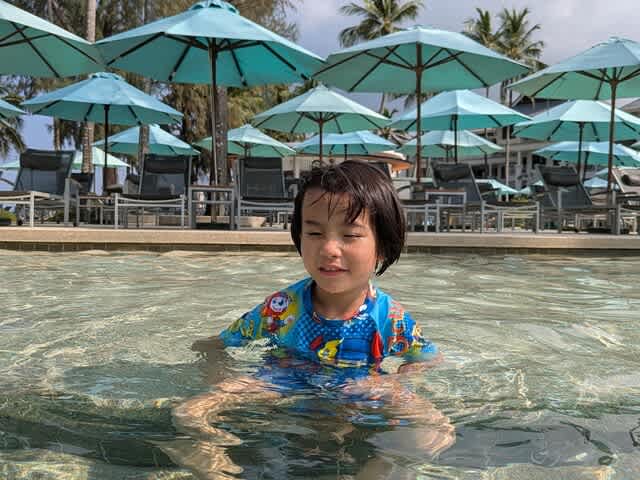 ホテルのプールは、監視員もいて、タオルも貸してくれて、レストランも真隣にあったりして、色々と助かる。