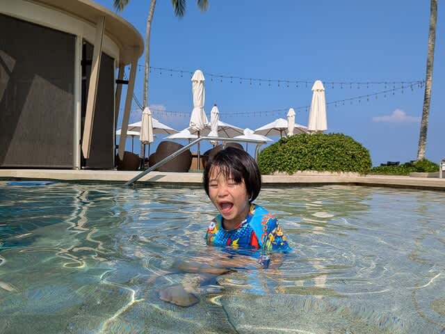 このプールのすぐ裏側が⛱️なので、海にも入れてあげたいんだが、ちょっとその時間はないな、と。