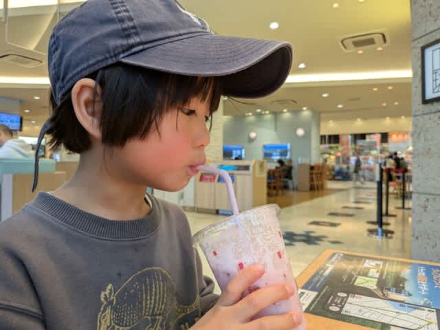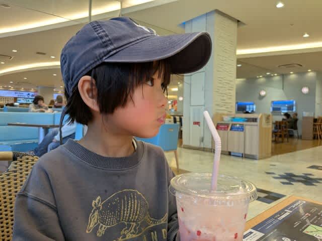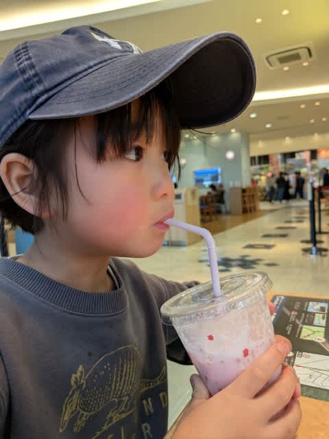 上島珈琲店がありましたね。みらんくんはいちごミルク🍓🍼。