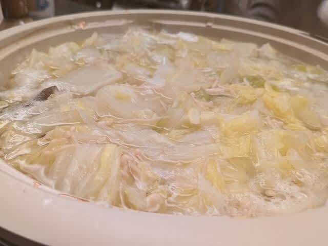 それと、昨晩🌃の鍋🍲の残りを全て攫う。これは昨晩の食べ始めのタイミングだけど、白菜が凄い量だったから今朝と言うか、お昼ご飯🥢てしては白菜をめっちゃ食べられた✨👏。