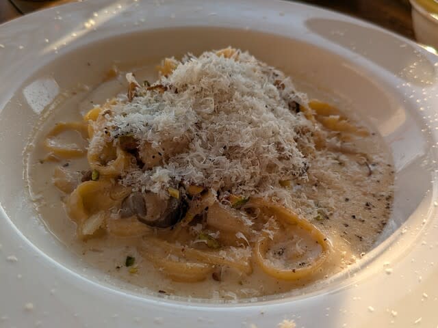 あとは、クリームパスタ。キノコ系が好きではなく、且つクリームパスタが好きではないことが判明しました、みらんくん🧸。あとは、ローストビーフ🍖のステーキ🥩。