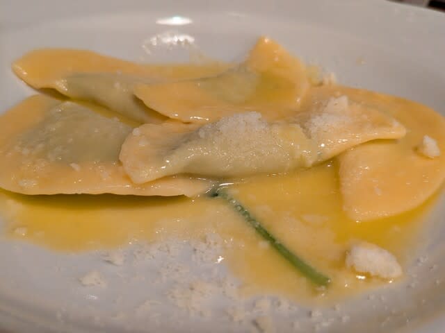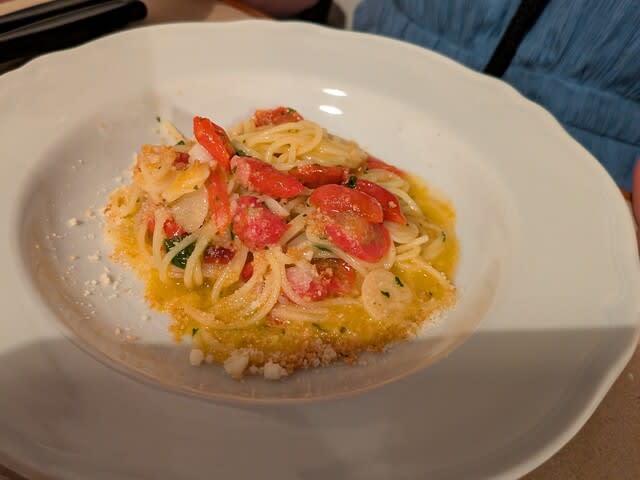1つsoupは撮り忘れた。これは奥さんのパスタ🍝。ニンニク🧄バリバリ効いてましたな。