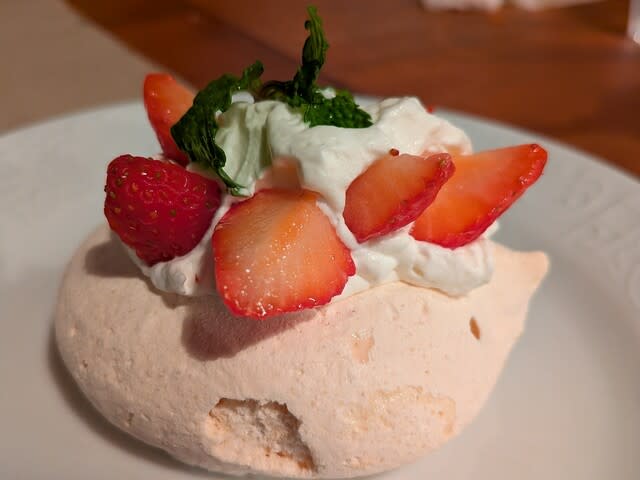 で、奥さんは桃🍑が乗ってるアイスクリーム🍦。それは撮り忘れ🤣。みらんくん🧸へのサービスはメレンゲ。これが甘くてbuono!