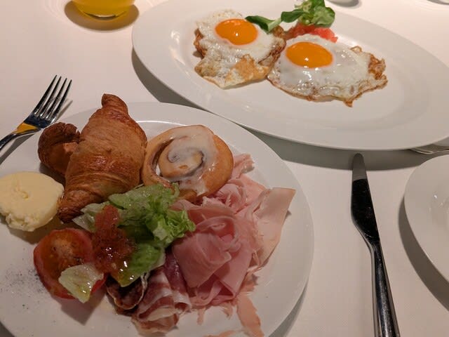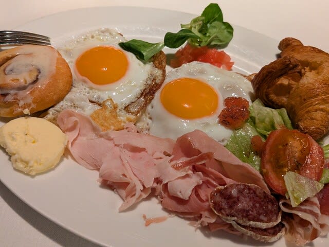 さて、Madrid🇪🇸での最後の朝ご飯🍞🥓🍳🍅🥐🥗。