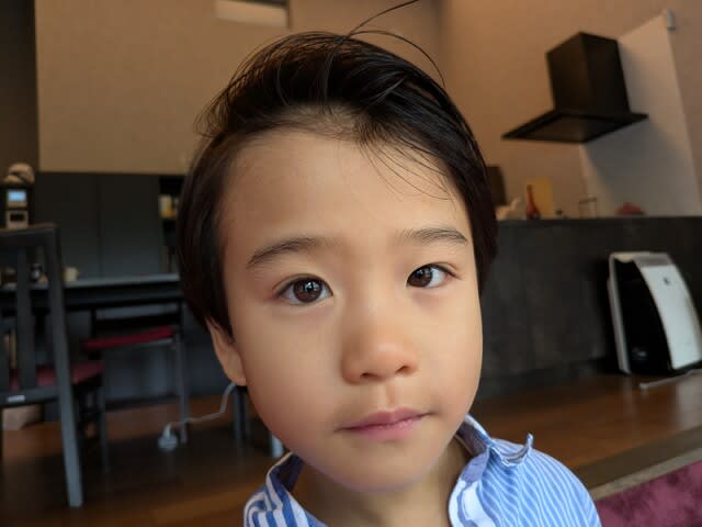 そしたらおでこのところに塗った時にちょっと髪について、アップした感じのヘアスタイルに。めっちゃイケメン♪。