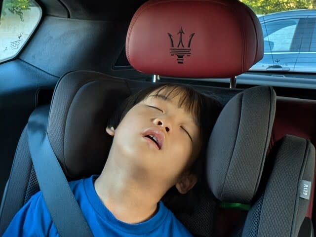 『疲れて車中で寝てしまったみらんくん・・・』