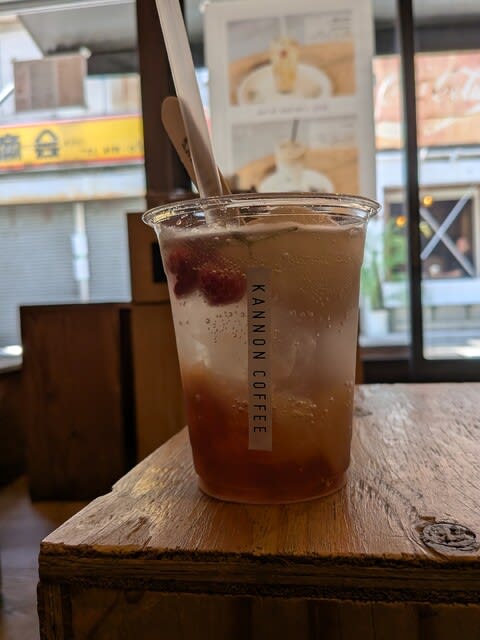 『Kannon coffeeで桃と紅茶のフロートを奥さんに···』