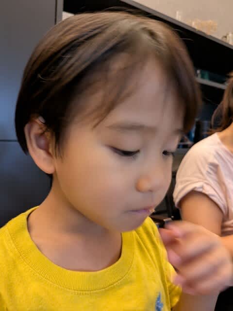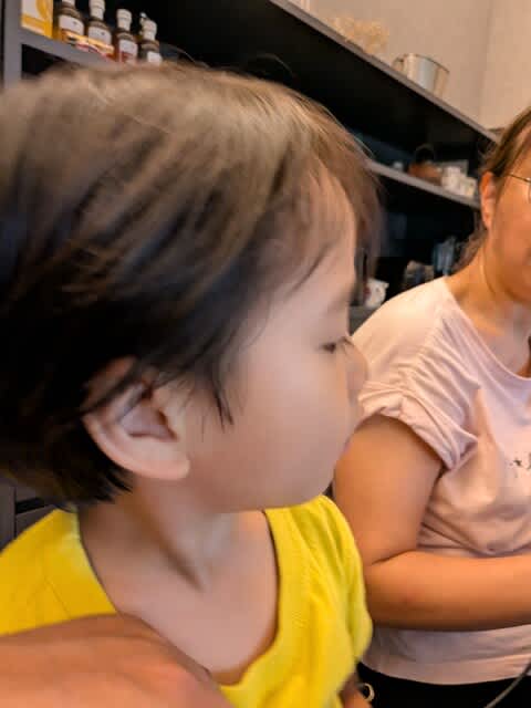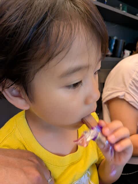 暫く寝ていた間に皆で散歩に行っていたらしい。で、帰宅後に暑かったみたいでアイスとか食べていましたね。