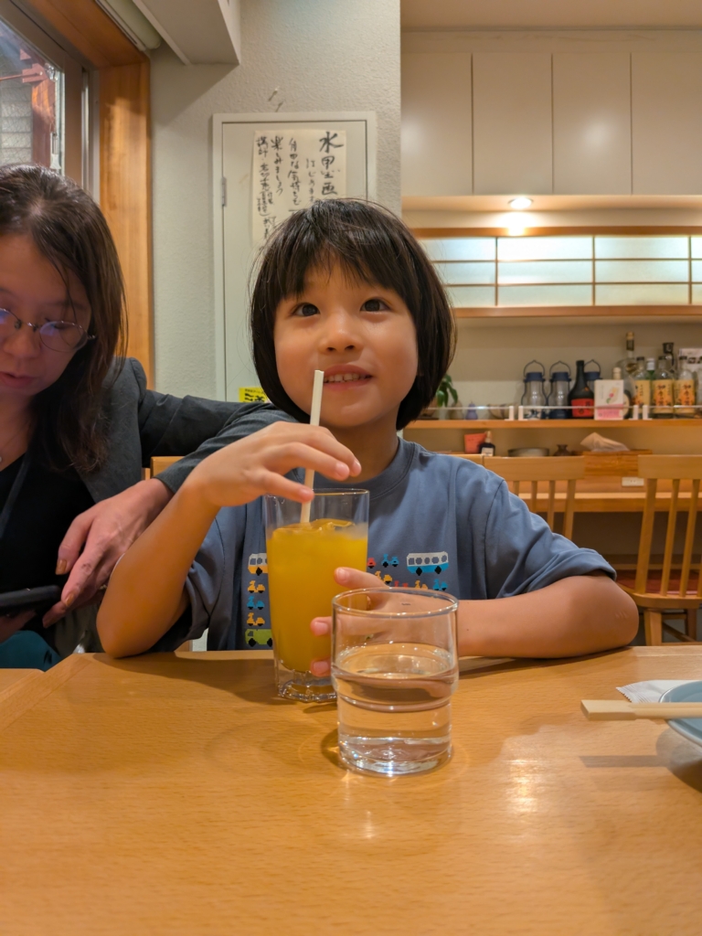 と言うことでみらんくん🧸(๑・㉨・๑)のお迎え後に、出張帰りの奥さん👩と待ち合わせして夕飯を。最初から蕎麦を食べたいと。