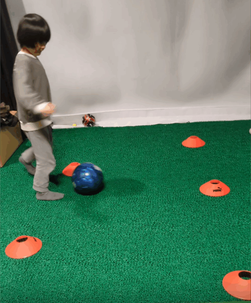 須走🗻のセカンドハウス🏠の中の人工芝の部屋で、サッカー⚽の練習。