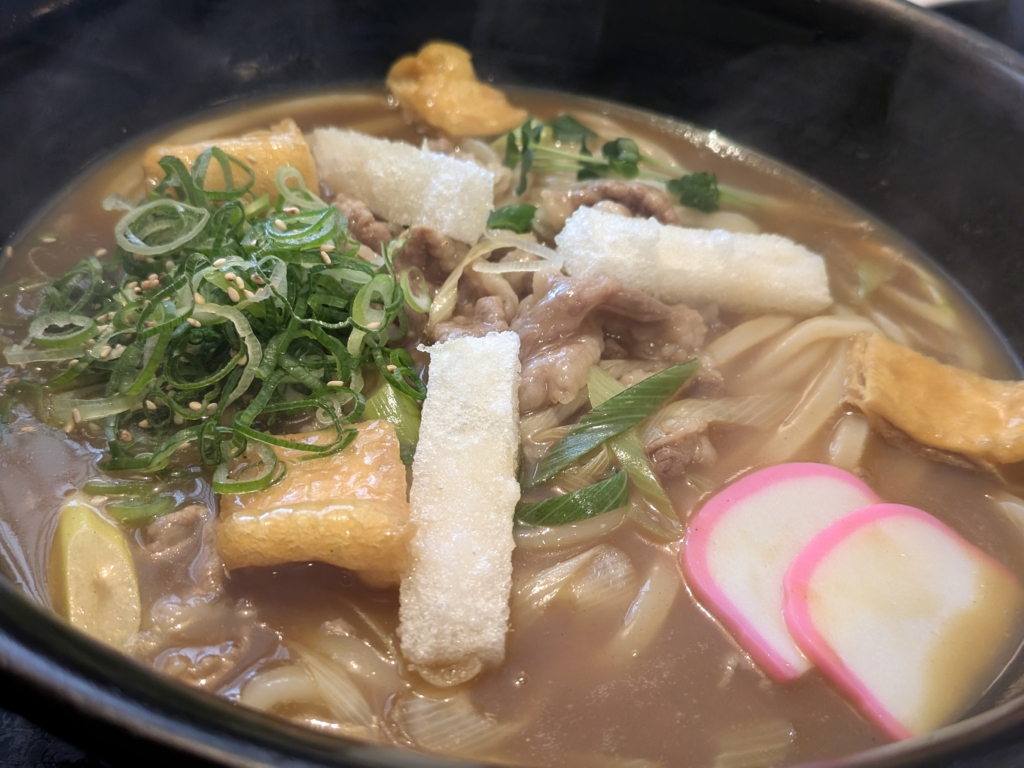 牛肉🐮の入ったカレーうどん、流石に3番目くらいの客でしたからまだありまして。あと、かやくご飯も、ね。