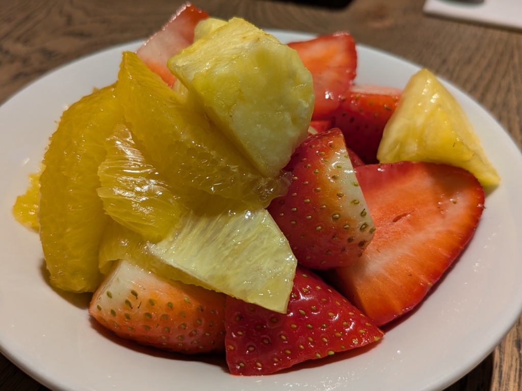 ん?魚🐟とフルーツ🍇🍓🍑🍉だけか…?あとはイギリス以外のものだよね。中華👲とか、インディアン👳とか。この国のことは大好きなんだが、食事 𓌉◯𓇋はホントに悩ましい😱。。。