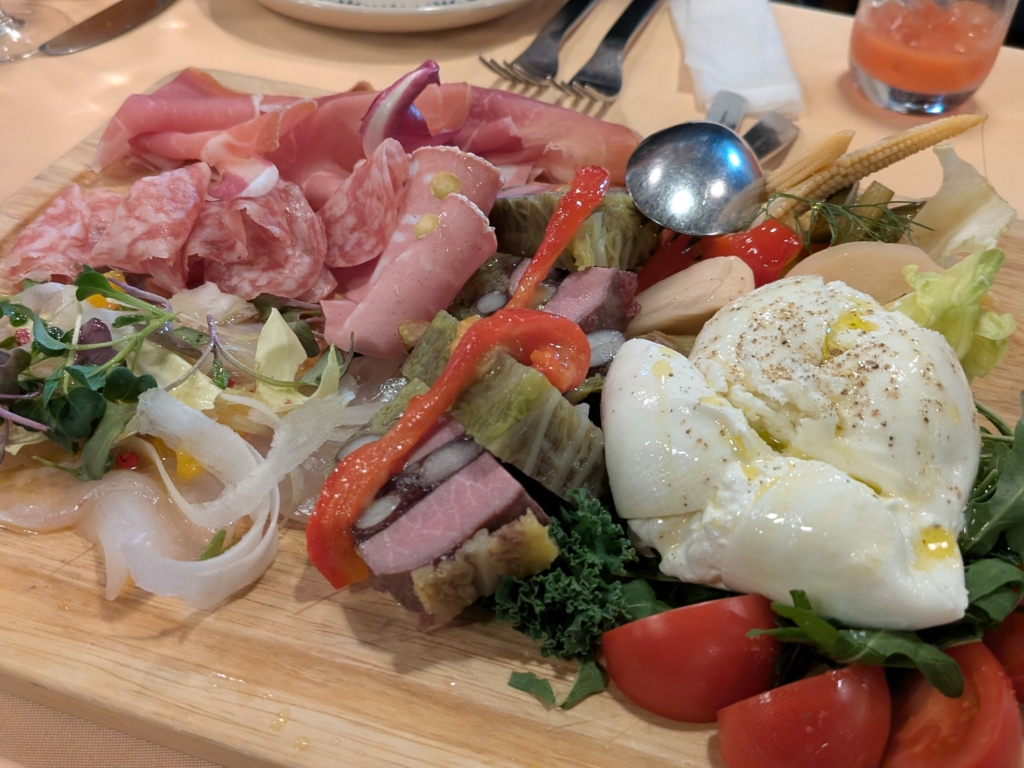 Antipastoはアレンジしてもらって、デフォルトからupgrade。Burrataが美味しかったなぁ😋。